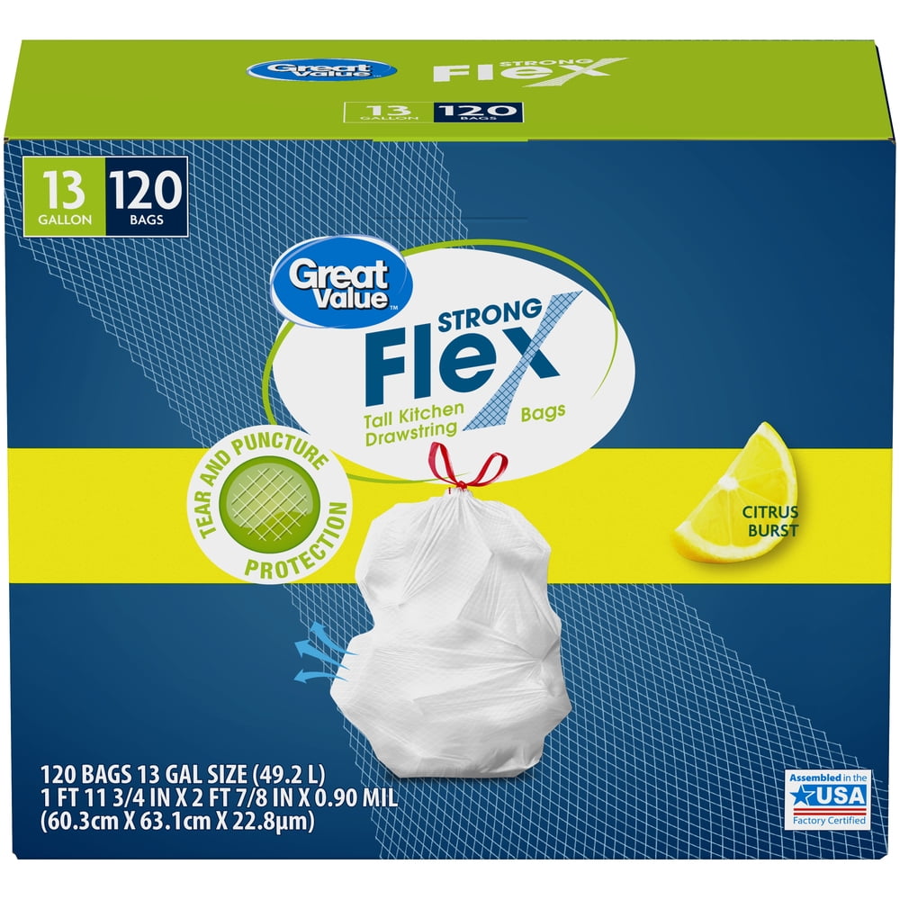 Great Value Sustainable Kitchen Trash Bags 13 Gallon 40 Bags Strong Flex Drawstring Walmart Com Walmart Com from i5.walmartimages.com Maybe you would like to learn more about one of these? Great value tall kitchen bags. We did not find results for: Check spelling or type a new query.